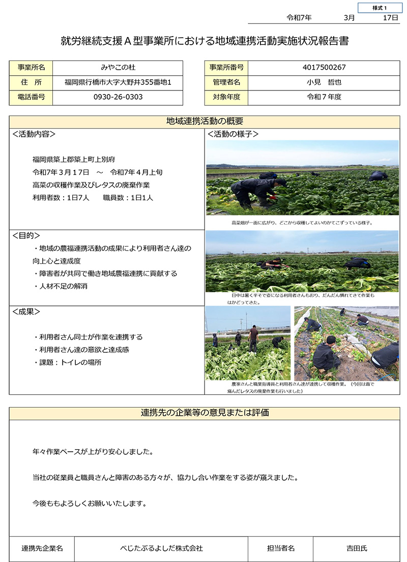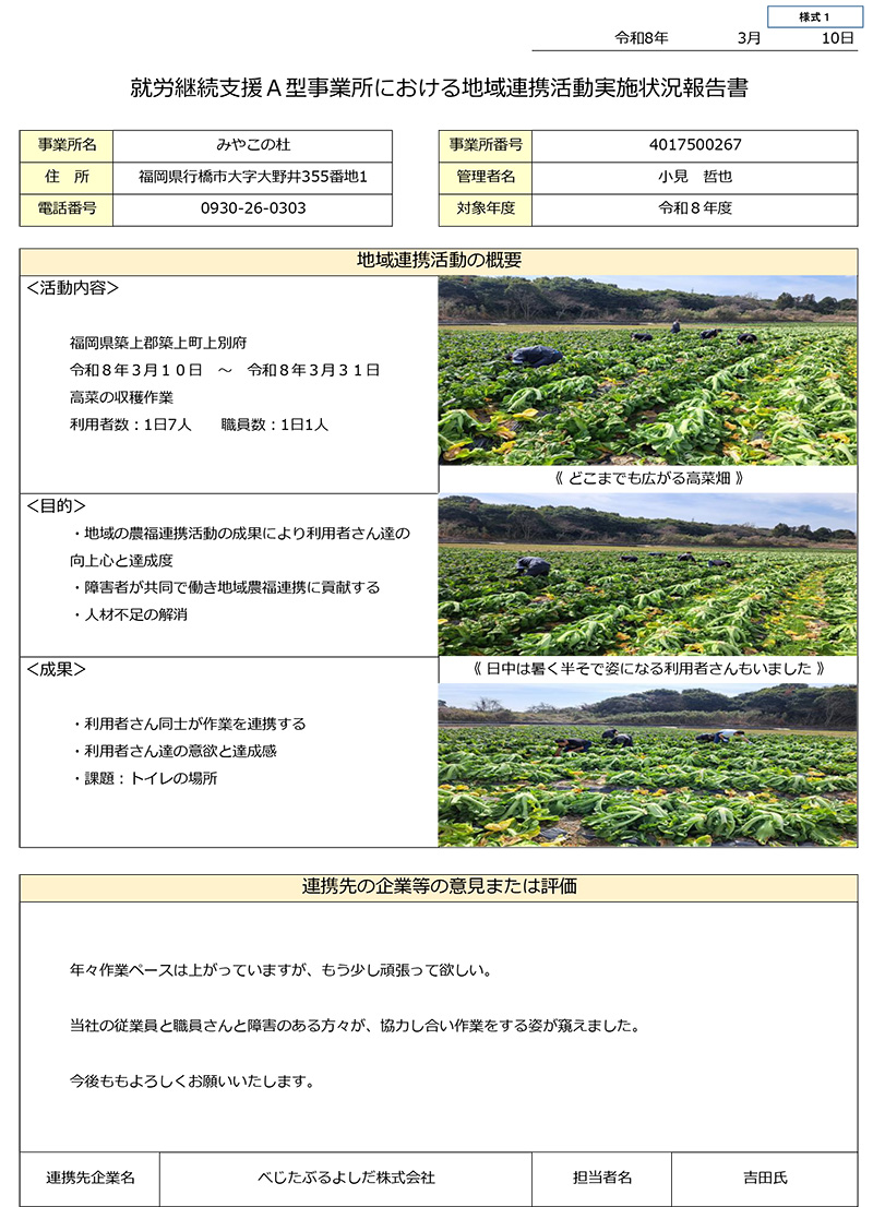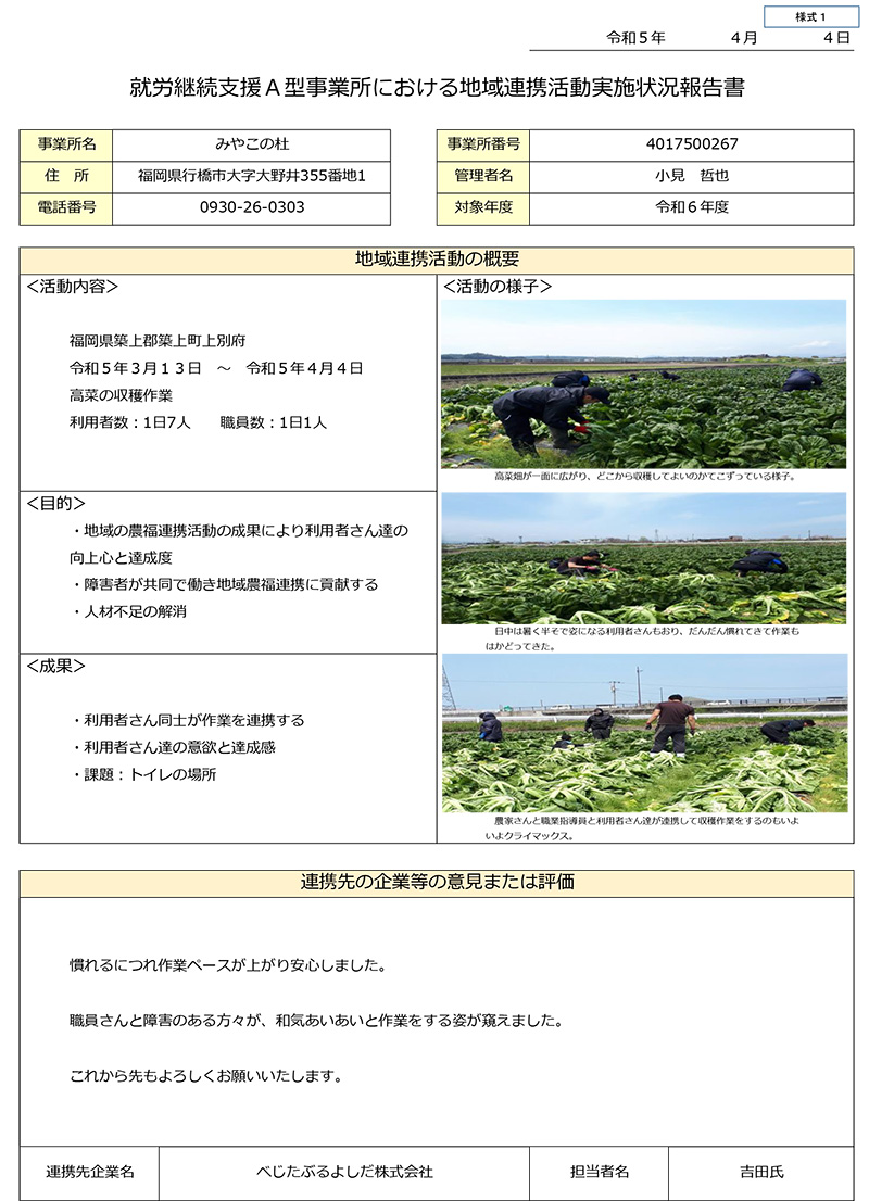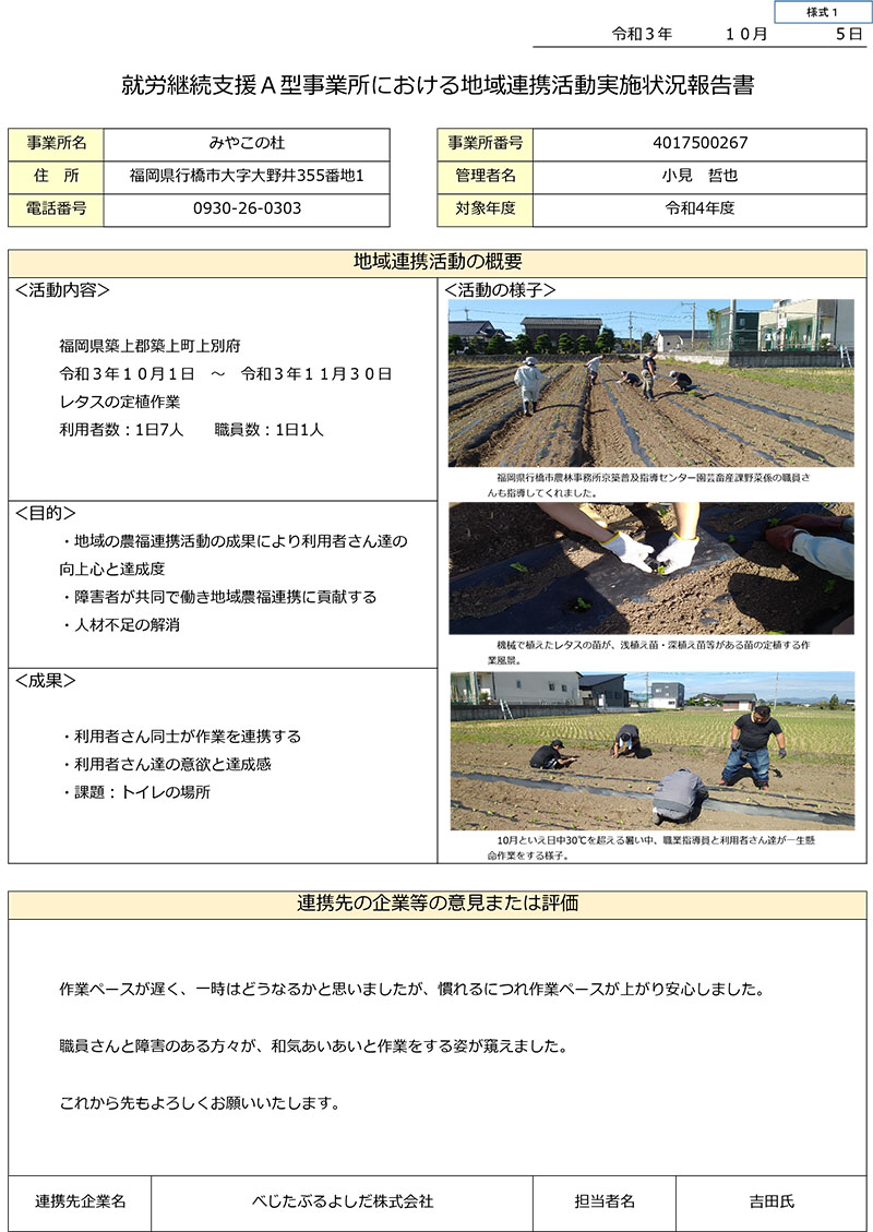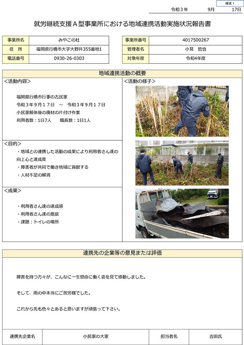 事業所は「障害福祉サー ビス及び障害児通所支援等の円滑な実施を確保するための基本的な指針(平成18年厚生労働省告示第395号)第 一 の 二 の 3」に規定する地域生活支援拠点等として次の機能を担う。